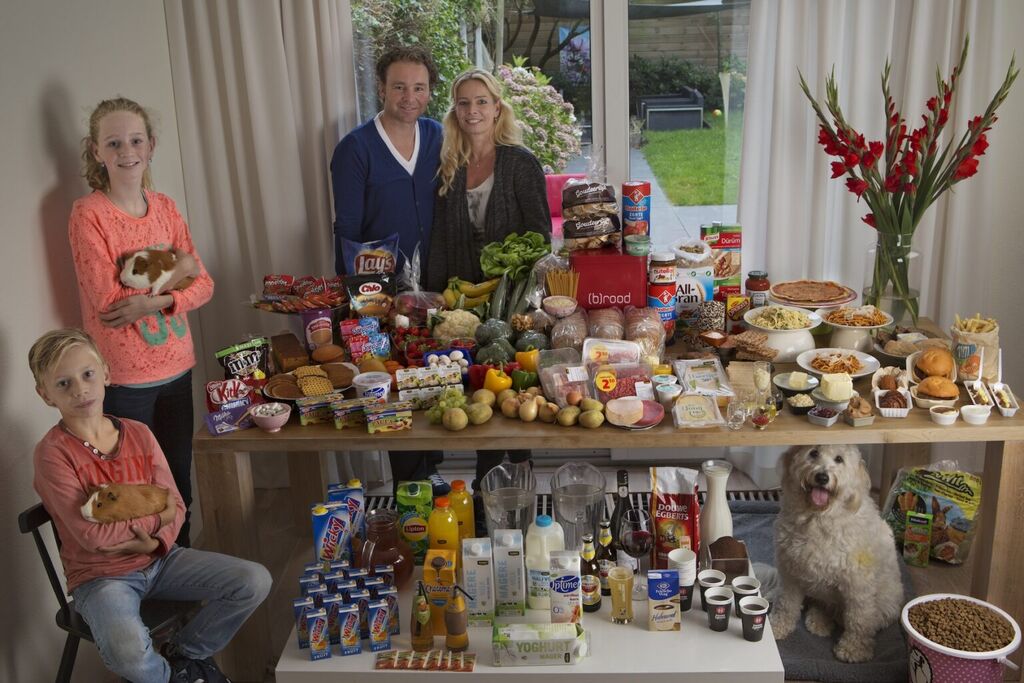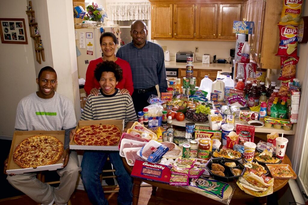 美國家庭餐桌上則是經常出現速食,鄰近的墨西哥,隨著附近大型美式超市開設、生活型態出現變化,成長中的孩子們開始常吃洋芋片、糖果等加工零食與點心。新鮮蔬果的攝取量卻逐漸減少,餐桌上幾乎每餐都會出現可口可樂。由於過度飲食與缺乏運動等原因,墨西哥全國約有65%的人口陷入肥胖問題。有點可惜沒看到什麼亞洲國家餐桌的照片,不然應該也會非常有趣。