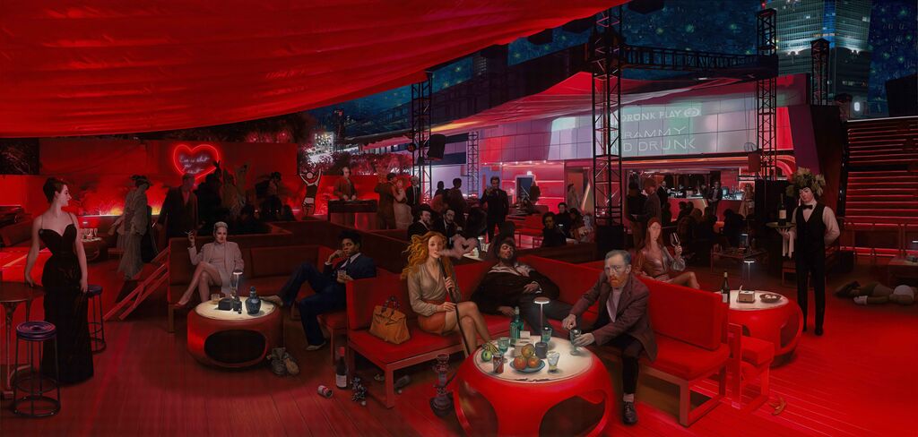 今年新作展現以往不曾有過的畫面深度與魅力。過往他的作品總是充滿著他無以絕倫的幽默與想像力下創造出來的各式人物,今年他刻意減少畫面中的人物數量,在人物間創造出空間留白,有一種電影畫面感,也有種私寫真隨手拍的日本攝影即興感。超寫實技法創造超現實畫面的風格越見成熟,,跨越國界、文化與年齡,各國藏家都能感受到他作品畫面的戲劇張力,在現今眾多亞洲年輕藝術家中獨樹一格。